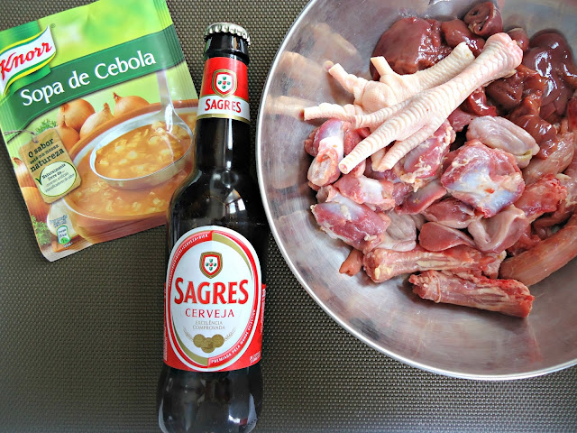 escolhi a receita "pipis guisados com cerveja", eu não adoro nem sou fã pipis, mas sou capaz de os comer, aliás eu não sou fã das patinhas de galinha ou dos pescoços, isso não sou capaz de comer, mas gosto das moelas e dos fígados.